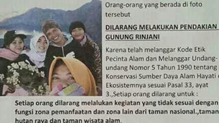 Pelarangan tersebut ditempel di pintu-pintu masuk pendakian Gunung Rinjani yaitu di Desa Sembalun dan Senaru.