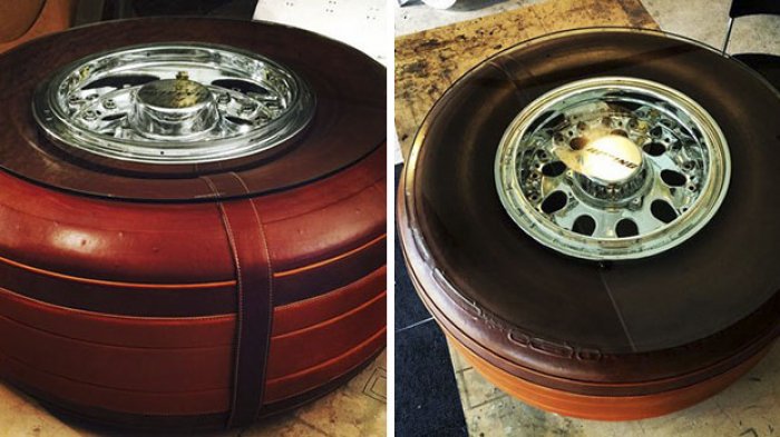 12. Meja yang terbuat dari ban pesawat Boeing 747