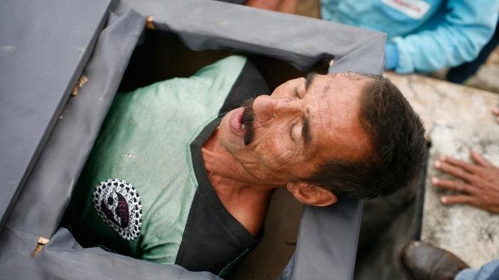 Mereka membawa peti dan membawa seseorang dipeti mati.