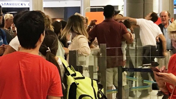 Polisi bandara kemudian dipanggil ke lokasi untuk melerai keduanya dan dua pria tersebut dibawa pergi oleh polisi.