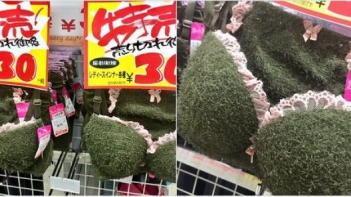 Model bra rumput sintetis ini ditemukan pertama kali oleh akun Twitter di Jepang @ht_mugicha saat sedang berbelanja di Toko Don Quijote, Jepang.