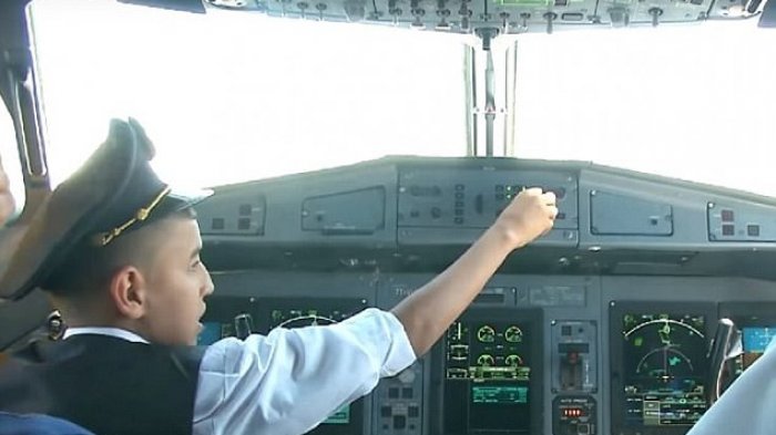 Dua pilot yang tidak diketahui namanya ini terekam membiarkan anak 10 tahun duduk dan menjalankan pesawat selama penerbangan.