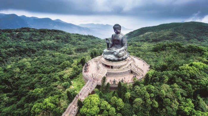 Ada patung Buddha raksasa yang terkenal di Ngong Ping.