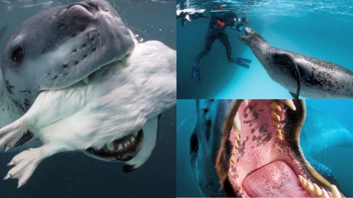 Anjing laut itu kemudian menjatuhkan seekor penguin.