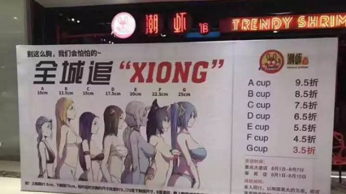 Melansir dari Shanghaiits, restoran ini menawarkan potongan harga berdasarkan ukuran bra para wanita.