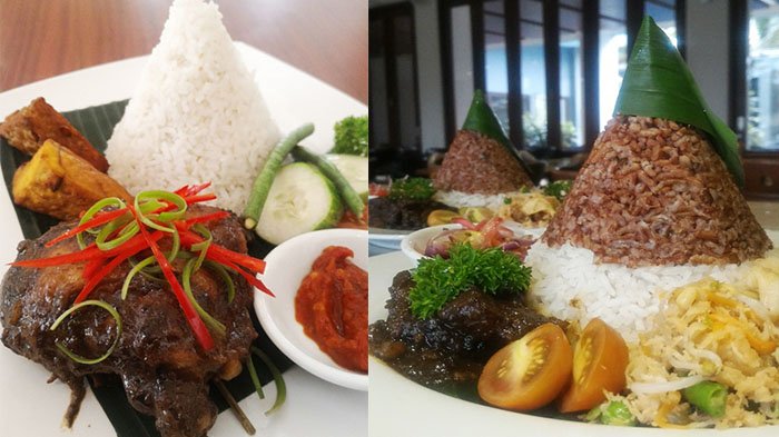 Yang utama dan pertama adalah Nasi Merah Putih, lengkap dengan ragam lauk pauk serta sambal kecombrang yang unik dan lezat.