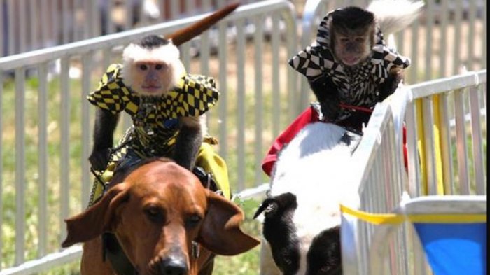 Acara yang paling populer di Georgia State Fair adalah Banana Derby, di mana monyet capuschin berkostum mengendarai anjing seperti kuda dan berlomba.