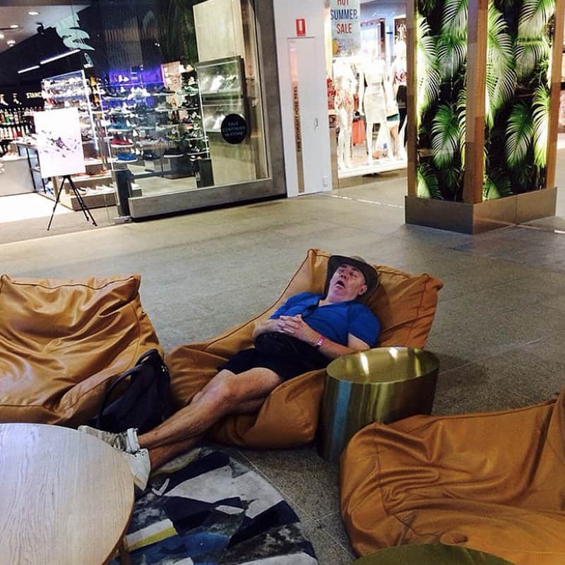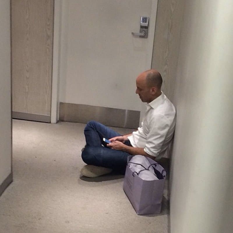 Orang ini mengucapkan terimakasih kepada langit karena bisa istirahat sambil menunggu pasangannya.