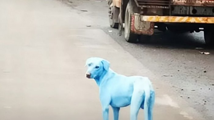 Seperti yang traveler lihat di atas, anjing telantar di Mumbai berubah warna jadi biru dan mengingatkan kita pada tokoh kartun Smurf.