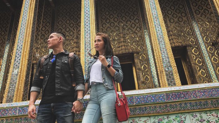 Grand Palace Temple, Phi Phi Island, serta Khao San Road adalah beberapa destinasi wisata yang disambangi pasangan ini.