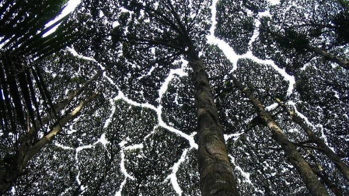Misalnya ada beberapa pohon yang sama sekali tidak saling bersentuhan, bahkan antar rantingnya pun tidak saling menyentuh.