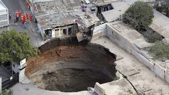 Pada tahun 2010, sebuah lubang selebar 20 meter terbentuk di Guatemala City.