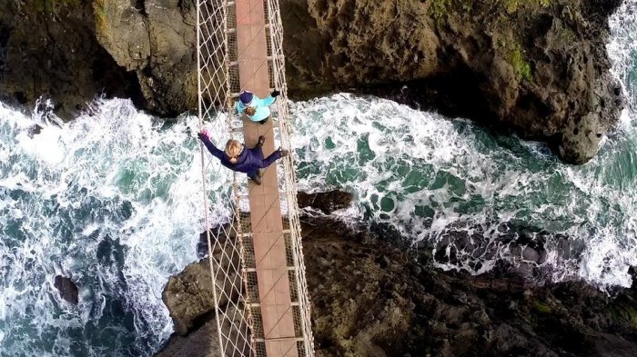 Dilansir TribunTravel.com dari laman earthporm.com, Carrick-a-Rede terkenal sebagai Jembatan tali paling menakutkan di dunia.
