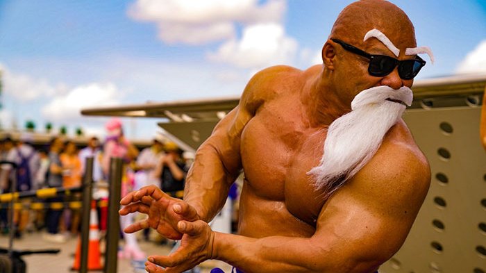 Cowok yang pada dasarnya memilki otot kekar ini dalam sekejap bisa mejelma sebagai Master Roshi di dunia nyata.