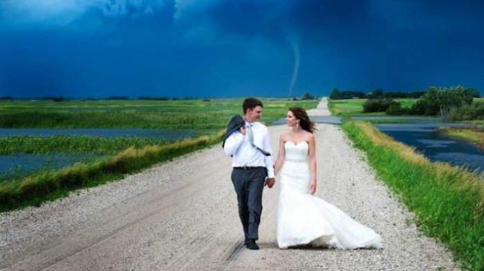 Cuaca buruk diprediksi turun saat hari pernikahan pasangan ini.