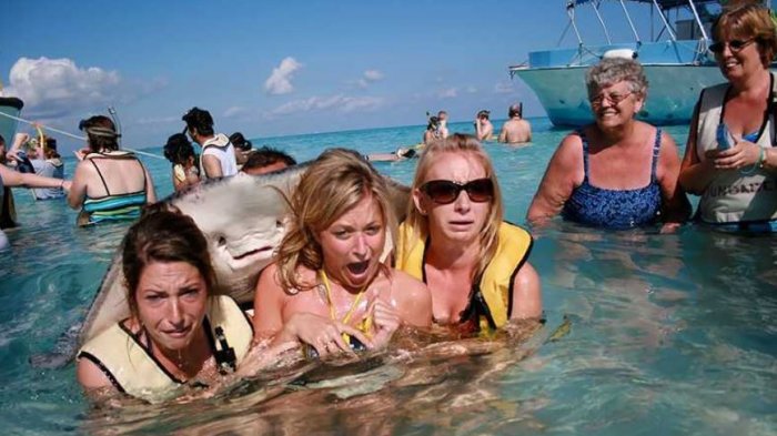 6. Begitu juga dengan photobomb yang dilakukan ikan pari ini.