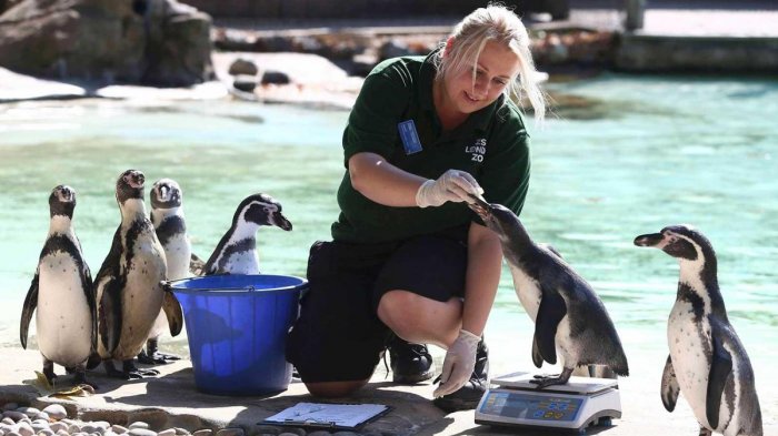 Berbeda dengan manusia, tingkah laku hewan susah diduga, termasuk saat mereka harus ditimbang.