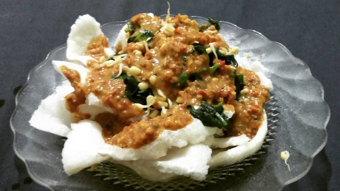 Biasanya disajikan dengan sayur kacang tolo, bumbu, dan bahan lain.