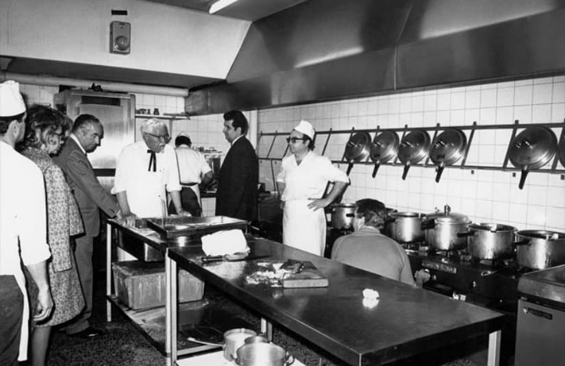 Sebelum memperluas ke lokasi yang lebih besar di seberang jalan dari stasiun pengisian bahan bakar, Harland Sanders menggunakan meja makannya untuk menjual makanan yang dia dibuat.