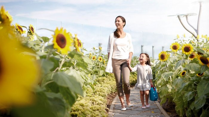 Sejumlah fasilitas tersebut menjadi spot foto bagi penumpang pesawat, di antaranya smoking area serupa taman bunga, patung kolosal, kolam renang terletak di rooftop, dan sebagainya.