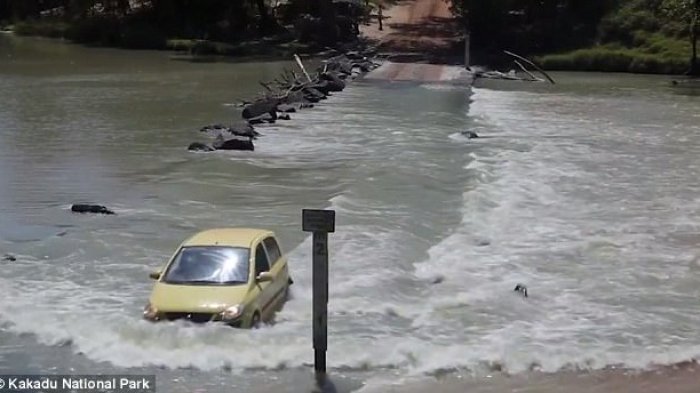 Peristiwa ini terjadi saat mobil tersebut melewati Cahills Crossing di Northern Territory, Australia pada Kamis (24/8/2017).