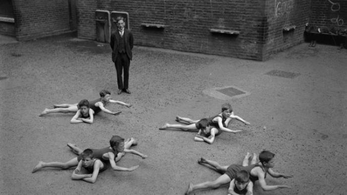 Pada tahun 1922, jika kamu ingin bisa berenang, kamu harus belajar dengan cara seperti ini.