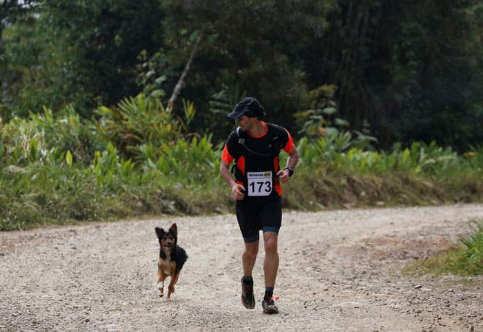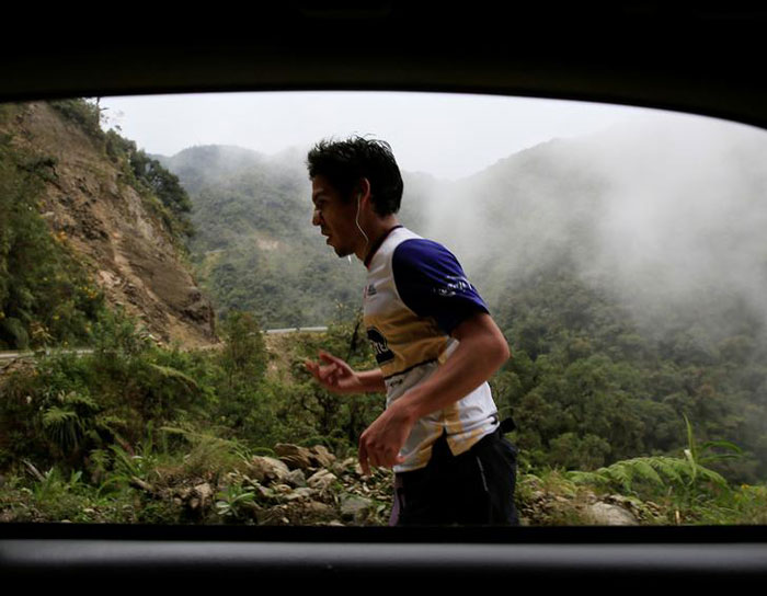 2. Seorang peserta kompetisi Skyrace tengah berlari di "Death Road".