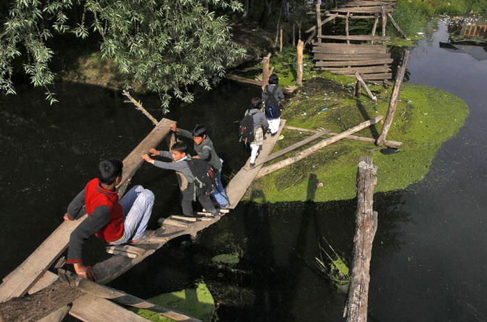 10. Pelajar ini mendaki tebing untuk sampai ke sekolah