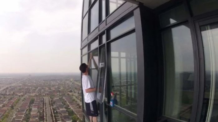 5. Segala risiko rela pria ini tempuh hanya demi membersihkan jendela.