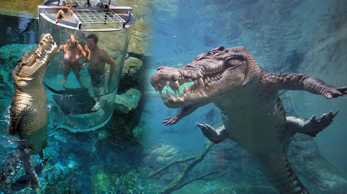 Ketika buaya mendekati kandang akrilik yang melindungi para wisatwan adalah saat menegangkan yang mampu memacu adrenalin.