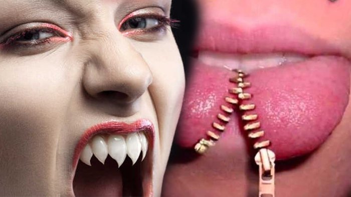 Gigi akan diasah untuk mengasosiasikan bagian tubuh seperti manusia macan tutul, manusia kadal, bahkan sebagai fantasi setan.