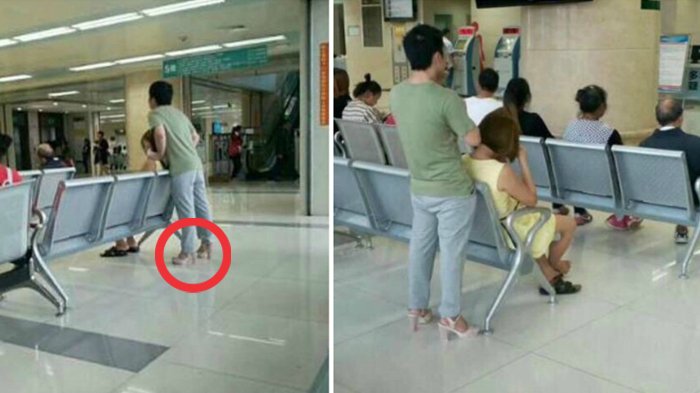 “The sepatu hak tinggi merah muda, sehingga pemandangan itu terlalu menarik,” kata Xie Chongqing Morning News, menambahkan bahwa pria itu dengan penuh kasih menyentuh pasangannya beberapa kali di kepala.