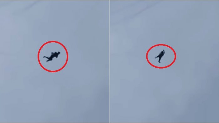 Akhirnya, dia terjebak di antara dua kabel dan tergantung di ketinggian yang diperkirakan berada di sekitar lantai 19, berdasarkan rekaman video tersebut.