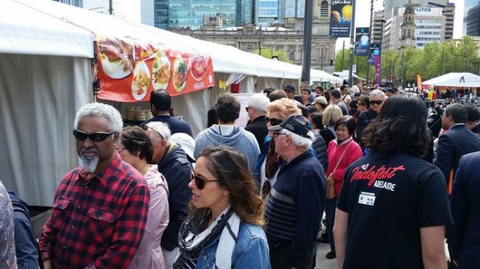 IndoFest di Adelaide disemarakkan oleh tenda yang menjajakan makanan Indonesia.