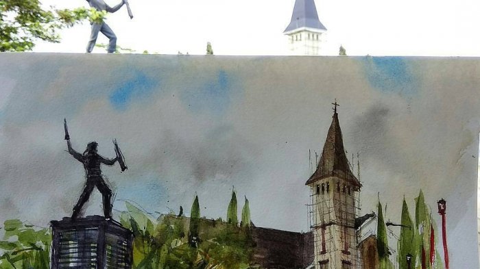 Sejumlah landmark atau pemandangan bisa menjadi obyek karya lukis sketsa yang bikin takjub siapapun yang melihatnya.