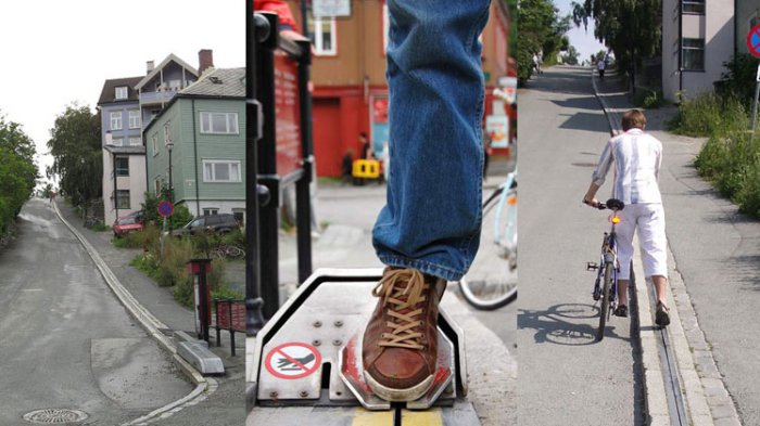 Di Norwegia eskalator bahkan ada yang dirancang khusus untuk pengendara sepeda.