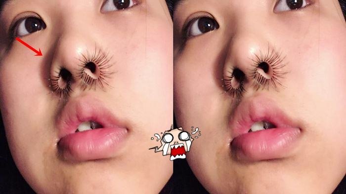 Sejumlah foto anak muda perempuan memasng bula mata palsu di bagian hidung menjadi perbincangan.