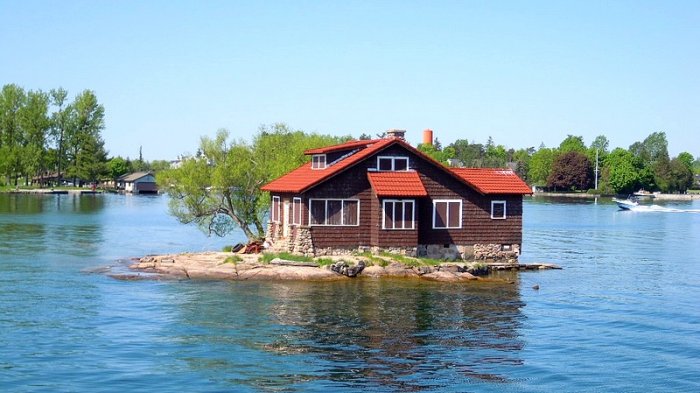 Sebuah pulau mini yang hanya memiliki satu rumah dengan halaman belakang dan depan aja, mau coba tinggal di sana?