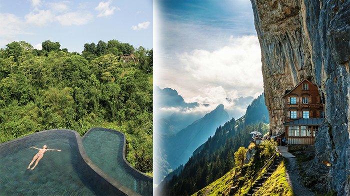 Tak heran bila belakangan ini muncul hotel-hotel yang dibangun di puncak tebing, gua, hingga bawah laut.