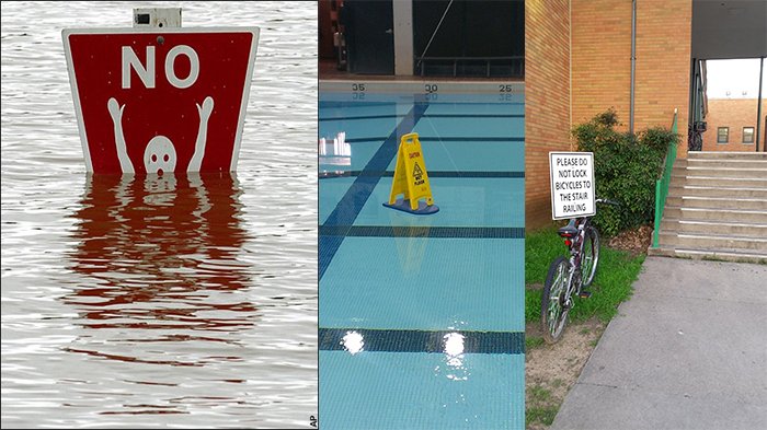Eits, bagaimana jadinya jika beberapa papan penanda seperti di bawah ini kamu jumpai saat traveling?