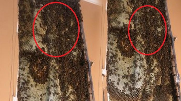 Ketika membuka dinding tersebut, Hegedus terkejut menemukan ribuan lebah sedang bersembunyi di balik dinding itu.
