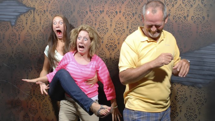 Well, jika memang belum pernah, yuk simak beberapa foto-foto seru para traveler yang ternyata punya ekpresi super gokil saat masuk ke rumah hantu.