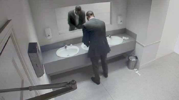 Ketika pria-pria tersebut memasuki kamar mandi untuk mencuci tangannya di wastafel, ada sesuatu yang mengejutkan terjadi.
