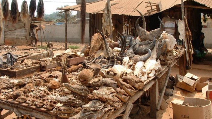 Penjual di pasar Lomé Voodoo Market menjual kaki gajah, kepala macan tutul, tangan simpanse, hati kuda, dan bagian hewan lainnya yang mungkin atau mungkin tidak kamu bayangkan.