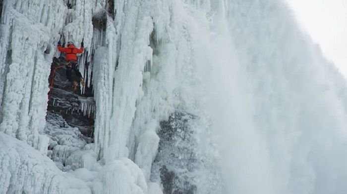 Air membeku disana-sini yang semakin membuat bahaya bagi Will melakukan aksi memanjat tersebut.