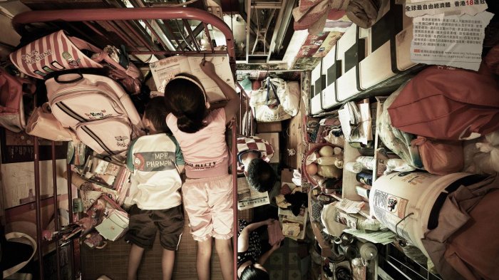 Dengan ruang sangat sempit, sebagian besar apartemen kecil di Hong Kong memiliki tempat tidur yang bisa dipakai lima atau enam orang.