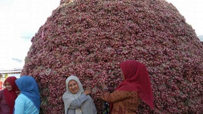 Gunungan bawang terbesar ini adalah milik peserta Kabupaten Enrekang.