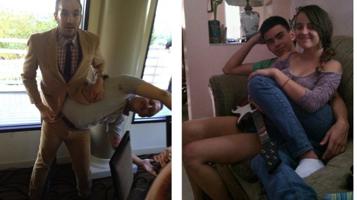 9. Entah orang ini memiliki kepala yang menyusut oleh dukun atau kamu dapat melihat kepala wanita di depannya karena kepalanya turun