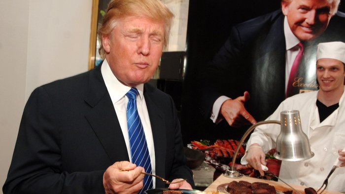 Presiden Donald Trump memiliki berbagai selera kuliner, dia jatuh cinta dengan makanan cepat saji dan "semua hal yang seharusnya tidak kita makan ... Bacon, telur, steak," kata Trump dalam sebuah wawancara.