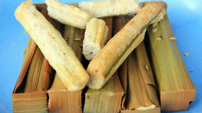 Sering dijadikan teman ngopi, sagu khas Papua dijual dengan harga Rp 15 ribu per bungkus.